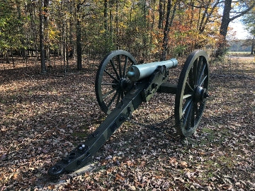 Battlefield 4 features an old cannon nestled among trees in a fall setting. The autumn foliage emphasizes the passage of time and offers insight into the environment where historical battles took place.