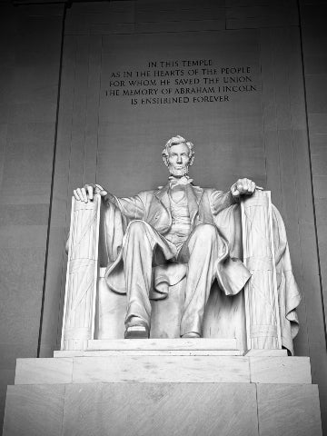 This statue of Abraham Lincoln at the Lincoln Memorial in Washington D.C., accompanied by an inscription, reflects profound historical significance and artistic mastery. The composition captures the solemn dignity of the memorial, offering an expert perspective on this iconic symbol of American heritage.